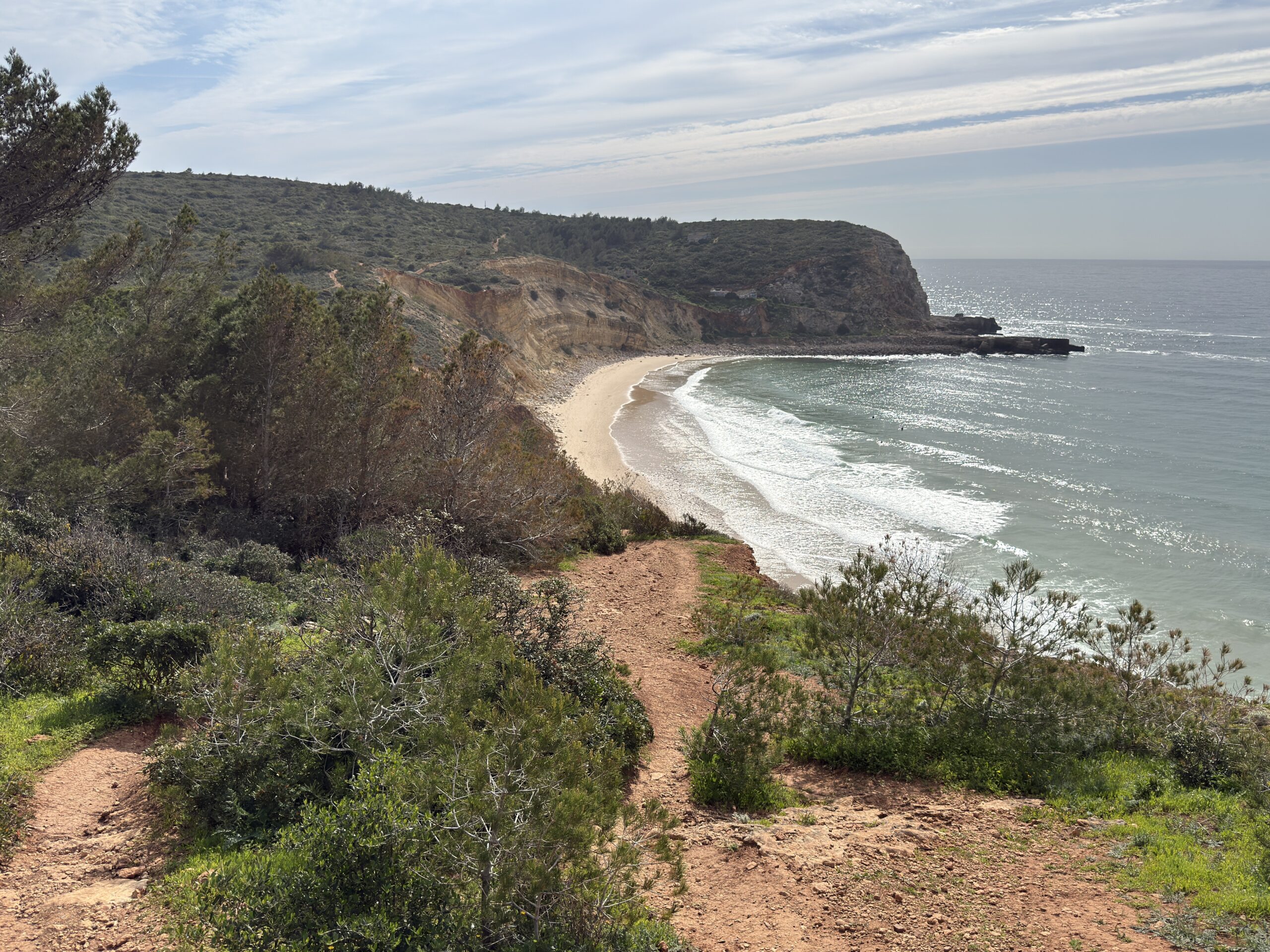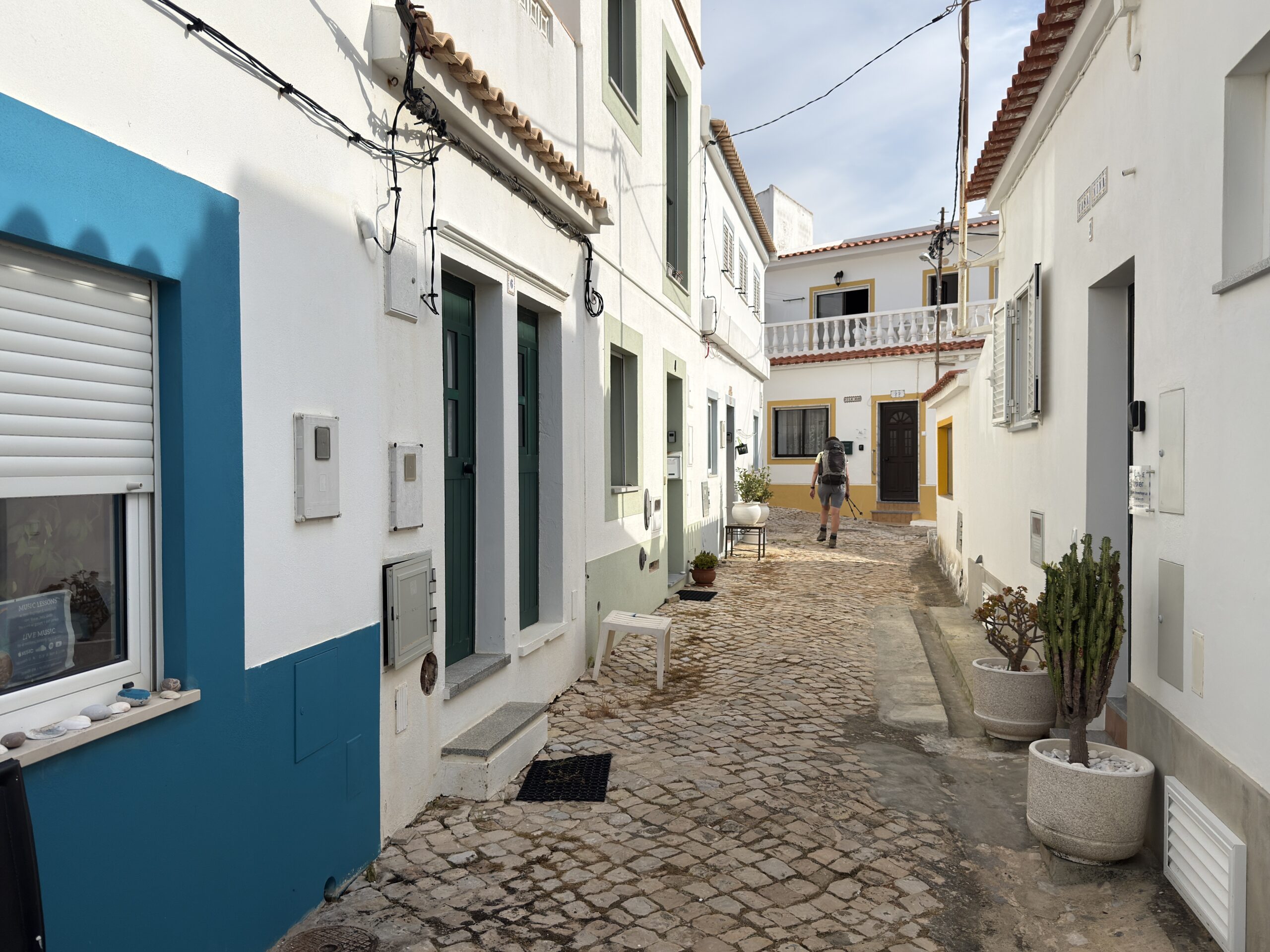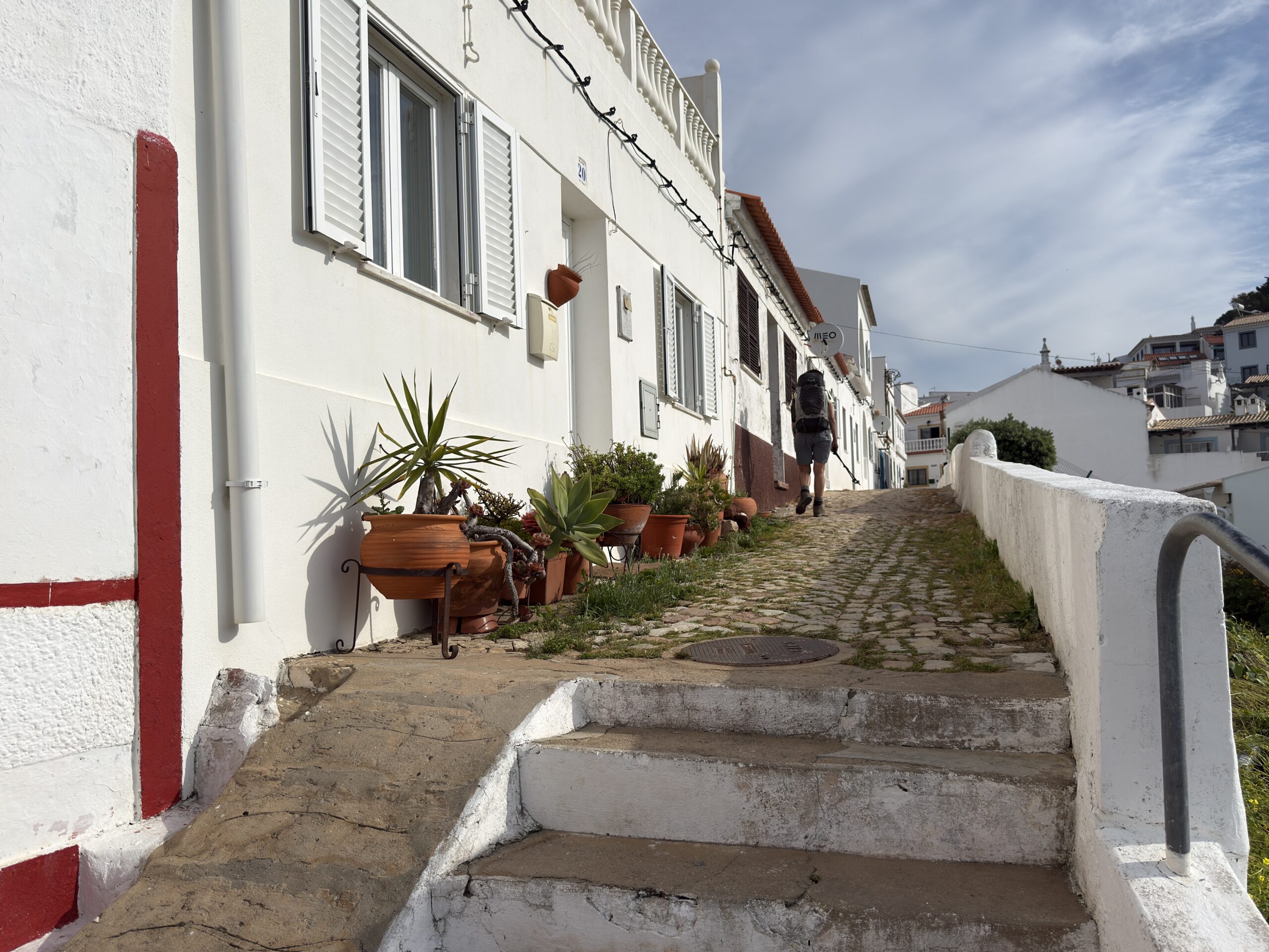 Da wir heute erstmals den Nationalpark Costa Vicentina verlassen, sehen wir immer mehr feudale Villen, die nah an die Klippen gebaut wurden. Eine müssen wir sogar komplett umrunden, da zwischen Zaun und Abgrund kein Platz mehr für den Wanderweg ist.